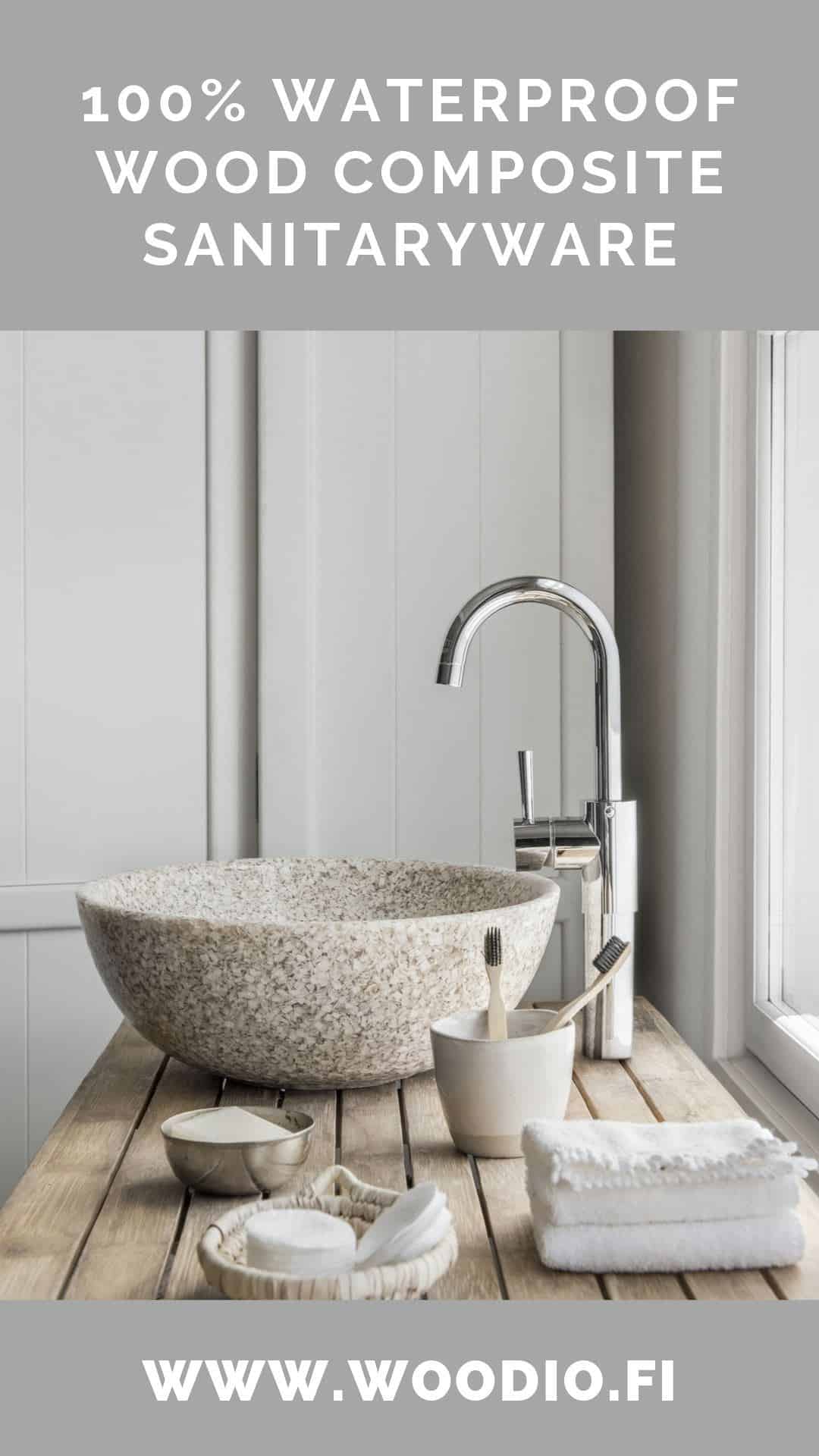 Made from real wood chips from locally sourced aspen and resin-based adhesives, Woodio products are designed to be sustainable and eco-friendly following the Finnish heritage of doing more with what we already have. The wood composite sanitaryware has a lower carbon footprint, throughout the whole product lifecycle, than traditional ceramic products and all Woodio products can be burned to create energy at the end of their lifecycle.