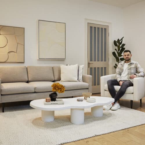 Online furniture brand, Swyft, has collaborated with interior designer Luke Arthur Wells to launch a new bouclé sofa collection