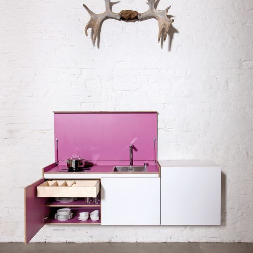 This small kitchen design from German manufacturer Miniki is perfect for homes where space-saving designs are required.