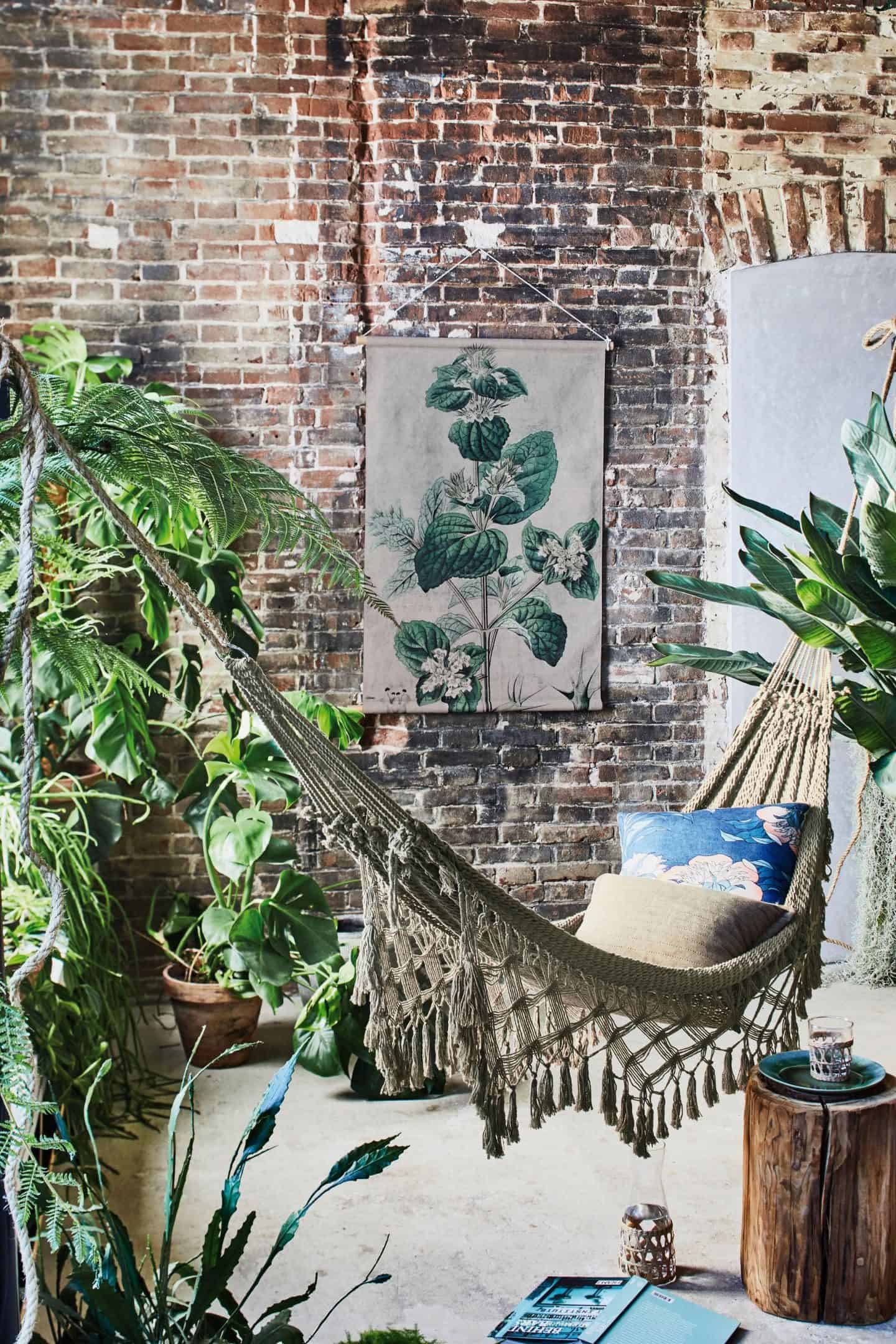 Bring the outdoors in with a hammock and plenty of plants . Credit: HK Living; HKLiving.com For an unusual display hang a beautiful item of clothing as if it were a piece of art. Credit: instagram.com/woodlandwhim