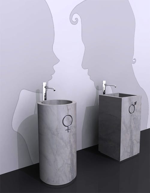 These free-standing his and hers basins from Vitruvit come in polished white Carrara marble as well as other marble varieties and have square or round shower trays to match.