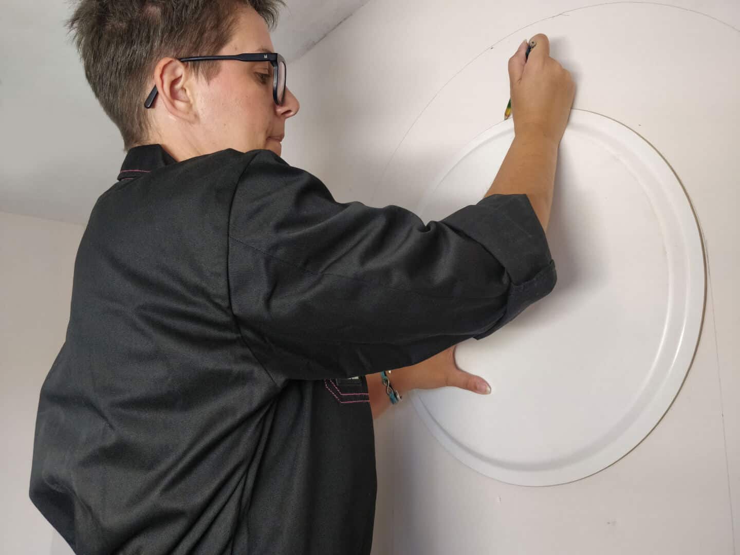 Now, arches aren’t the easiest things to draw out on a wall. I wanted this to be as easy as possible and I didn’t really want to have to freehand any of the curved lines. So instead, I looked around my home to find things I could draw around. That way I would know they would be neat and tidy.