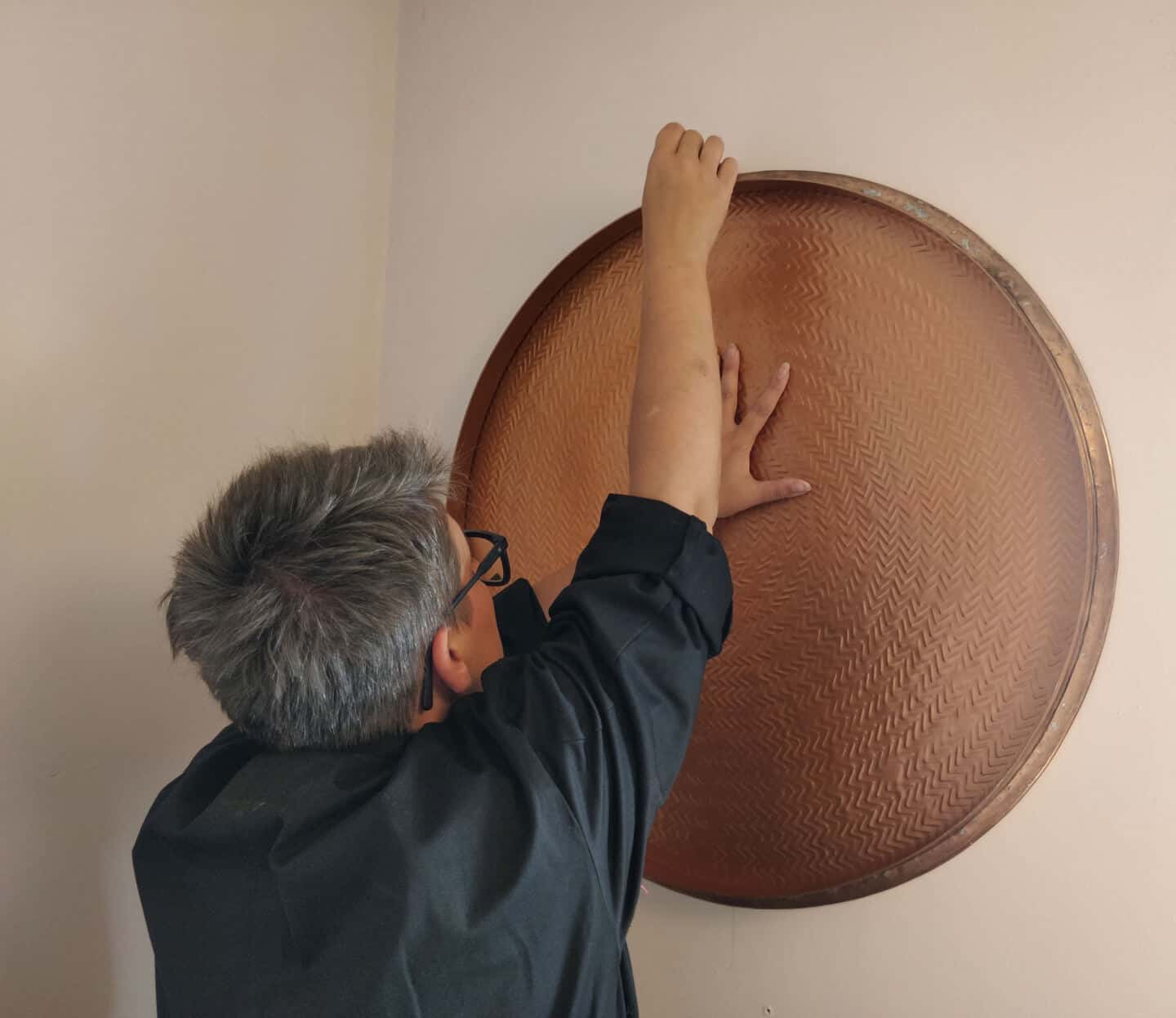 For the outside curve of the arch, I drew around the lid of my coffee table which just so happened to be the perfect size. Then for the inner curve, I drew around a large tray. I was super happy with how easy this was. I then found a small plate to use for the circle inside the arch.
