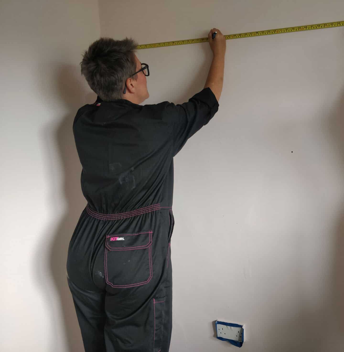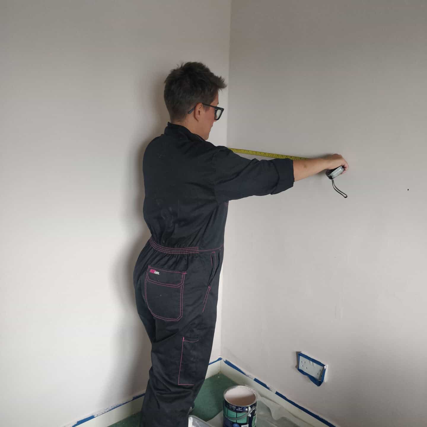 Having drawn out the design for my DIY painted arch accent wall on a piece of paper, I then had to transfer this design onto the wall. I based this on where the girls new bed will go when it arrives and worked from there. I simply used a tape measure, long ruler, spirit level and a pencil to do this.