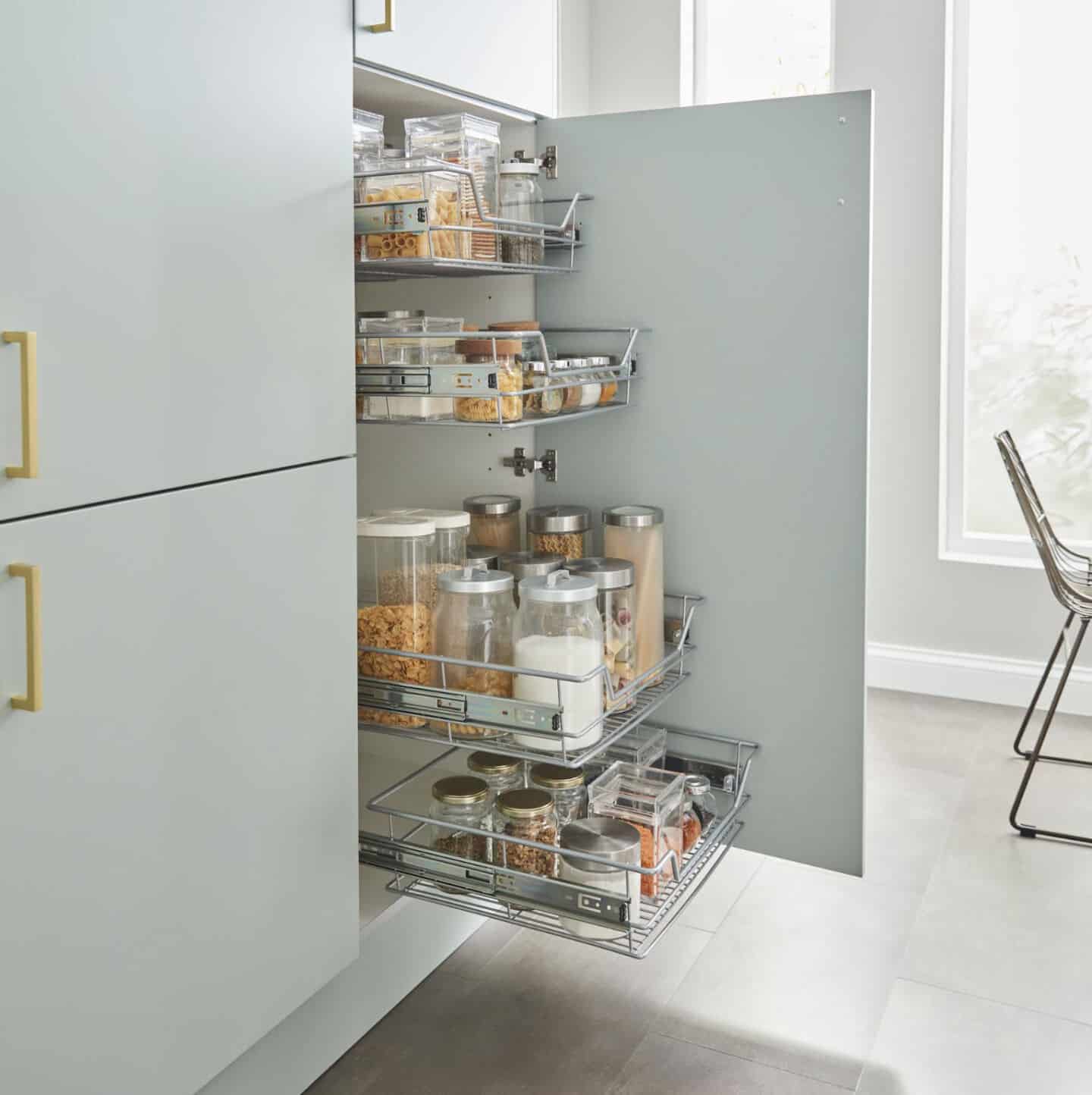 As my husband loves to cook from scratch, we generally have a lot of ingredients in our kitchen. Not only fresh produce but also canned goods and dry foods like pasta, flour, couscous, breadcrumbs etc. We store all of this in cupboards but it can be a pain having to pull everything out to find what you are looking for. This is why I really like these clever pull-out larder drawers. They make it so much easier to visually assess what you have inside the cupboard and locate what you need.
