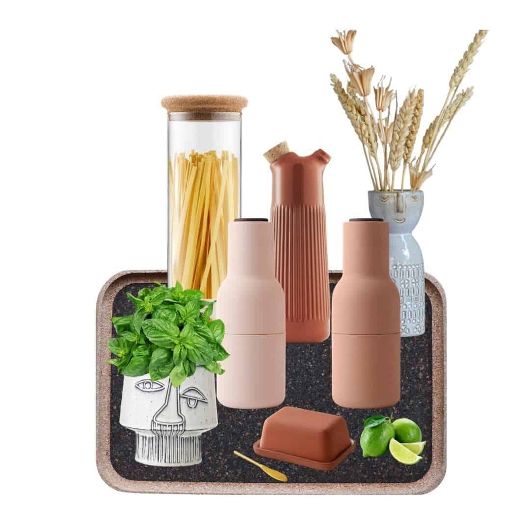 I wanted to add a bit of warmth to the kitchen and bring in a more grounded feeling. I chose products in an earthy colour palette that are also inspired by nature.