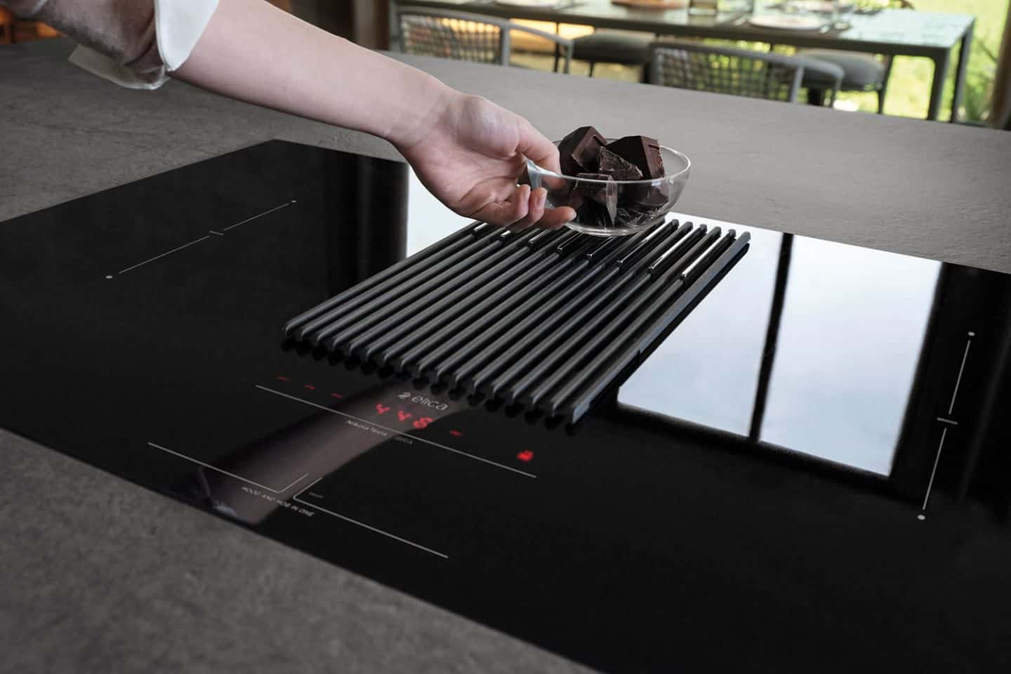 So what exactly have I learnt? In recent years, the kitchen design industry has witnessed the rise of extractor hobs: hobs with an integral downdraft extractor. You’ve probably seen downdraft extractors before, you know those boxes that rise up out from the worktop and suck away all the cooking fumes? But these new innovations are actually built into the hob itself.