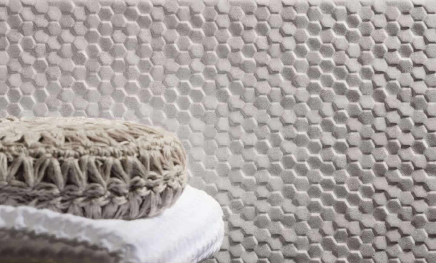 To really make a statement with texture, opt for tiles that have texture or patterns printed onto them. These botanical tiles really do add depth and are longing to be touched and caressed. The large-format hexagon tiles of the Amazonia range really stand out.