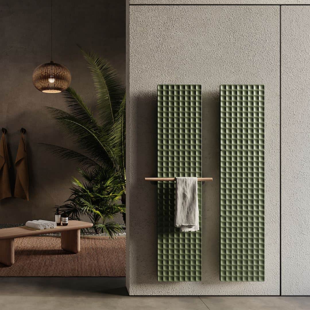 Waffle radiator in Brenton Green, designed by Piero Lissoni for Antrax IT.