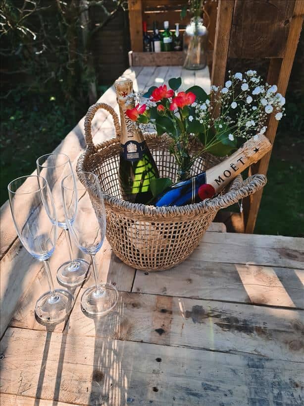 Consider creating a drinks station. This doesn’t have to be quite as spectacular as Hannah’s bars, although if you’re in Devon you could hire one. It can be anything from a small bar cart, to a stash of drinks hidden in buckets of ice under a table. It obviously depends on how many guests you are entertaining (and what current restrictions permit of course) as to which option you choose. But what you want to achieve is a hassle-free way to serve your guests.