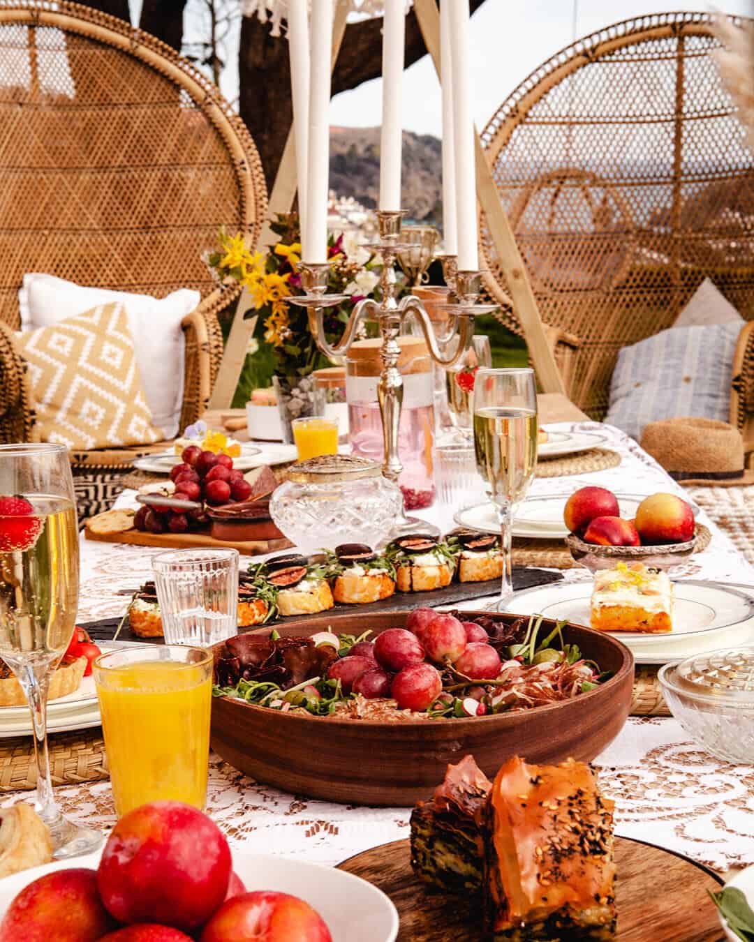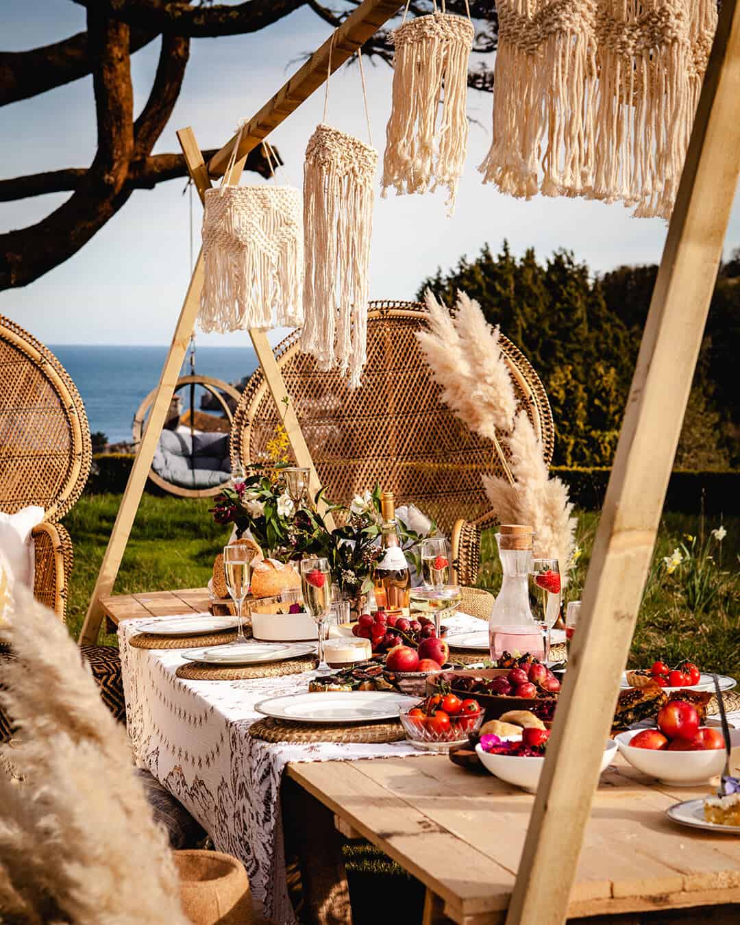 Entertain outdoors with a beautiful boho picnic set up by The Natural Hire Company in the Grounds of Barrington House. Food by The Kitchen Table and Photography by Bite Something