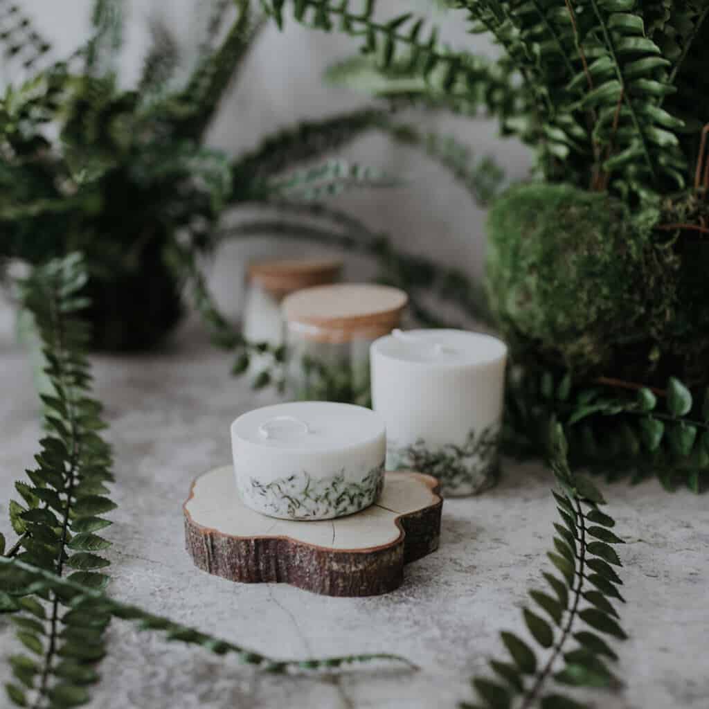 Simple things like vases with texture and natural woven baskets make a huge difference. We sell a range of candles that have real flowers, moss, and berries in them and they smell like the outdoors.