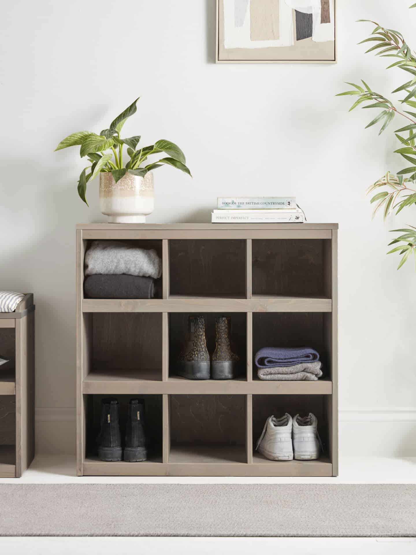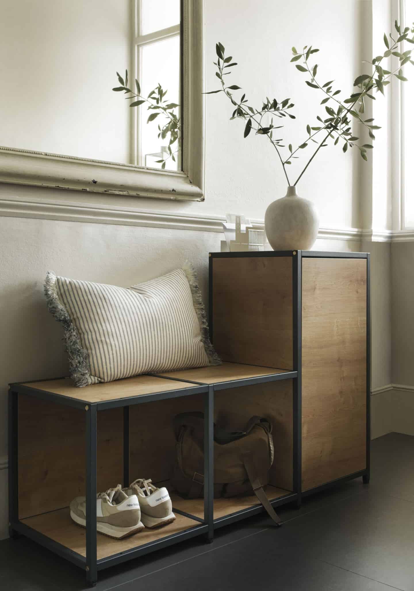 Units that combine coat and shoe storage may be more effective when it comes to spatial planning. Freestanding units that provide shelves, rails and drawers help to maximise the floor space that is taken up and are multifunctional. We do have to make sure not to overload the unit though otherwise, it will start to look messy and cluttered very quickly.