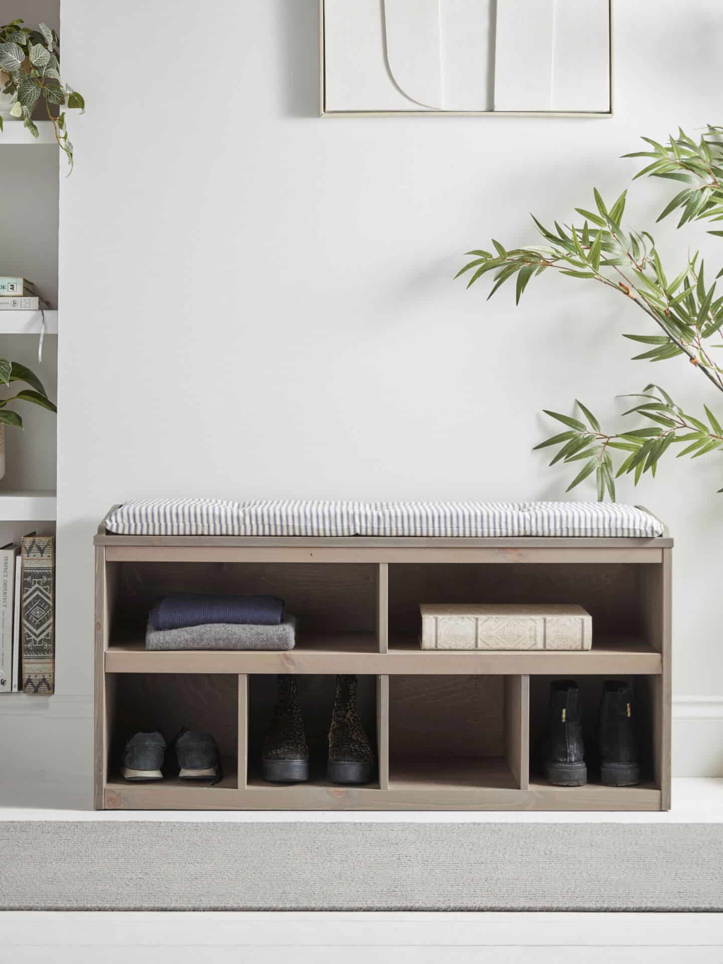 Incorporating some kind of seating into the shoe storage is always a good idea. It makes it more comfortable when putting shoes on and removing them if you can sit down. Again this will depend on the space you have available. In a narrow hallway this may not be possible.