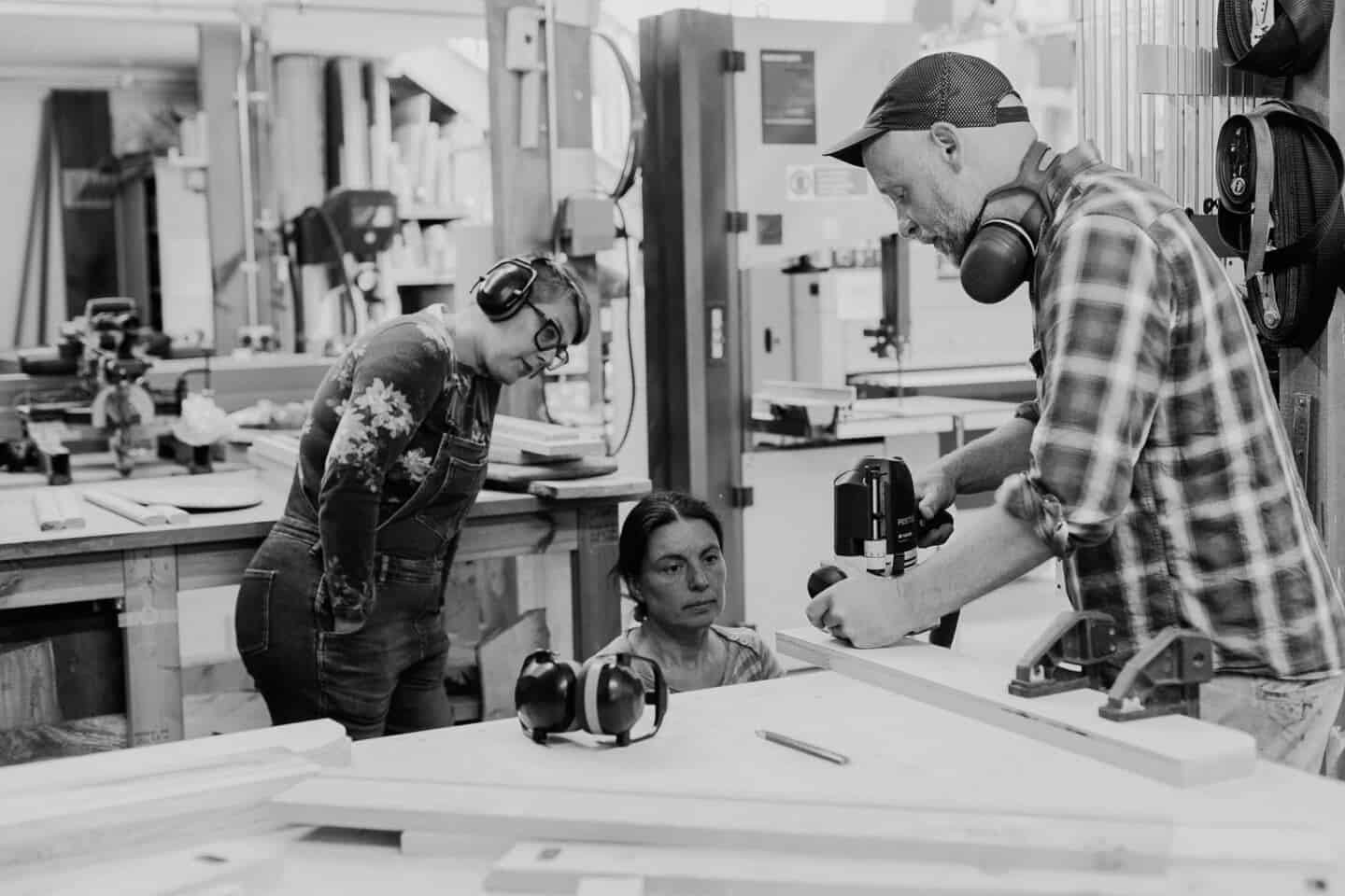 Given my very limited experience with woodwork and DIY, this woodwork for beginners course was very much out of my comfort zone and a very steep learning curve. There was so much to learn and it really made me chuckle when I saw the professional photos taken by local photographer Lucy Wallace. My face was a picture of focus and concentration as I tried hard to take it all in and operate the machinery safely.